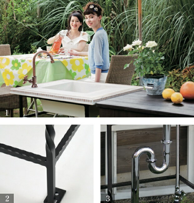 ガーデンシンク特徴 ガーデンシンク ショートタイプ ロ・コ・コ クローバー ガーデン向けのおしゃれな外流し クラシカルなアンティーク調デザインの屋外用シンク ロココ 家庭菜園やアウトドアキッチンの流し場、バーベキューの洗い場に簡易流し台(送料無料) クラシカル・アンティーク調デザインシンク「ロ・コ・コ」 クローバー柄のタイルと足部のデザインがかわいい、おしゃれなガーデンシンク。