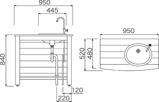■サイズ(mm)材質: 幅950×高さ840×奥行520(ウリン材) ボウル(内径):幅445×奥行365×深さ150(陶磁器、釉薬) ■重量(kg):45kg ■完成品 日本製 納期 ご注文後、3週間程度で納品可能です。