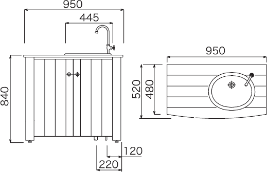 ■サイズ(mm): 幅950×高さ840×奥行520(ウリン材) ボウル(内径):幅445×奥行365×深さ150(陶磁器、釉薬) ■重量(kg):75kg ■完成品 日本製 納期 ご注文後、3週間程度で納品可能です。