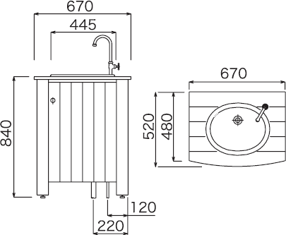 ■サイズ(mm): 幅670×高さ840×奥行520(ウリン材) ボウル(内径):幅445×奥行365×深さ150(陶磁器、釉薬) ■重量(kg):45kg ■完成品 日本製 納期 ご注文後、3週間程度で納品可能です。