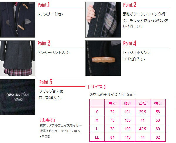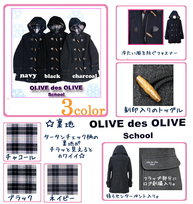 スクールコート オリーブデオリーブ ダッフルコート 【OLIVE des OLIVE】【送料無料】 ネイビー/チャコールグレー ブラック 学生服 学生コート スクール コート school coat 【532P19Apr16】