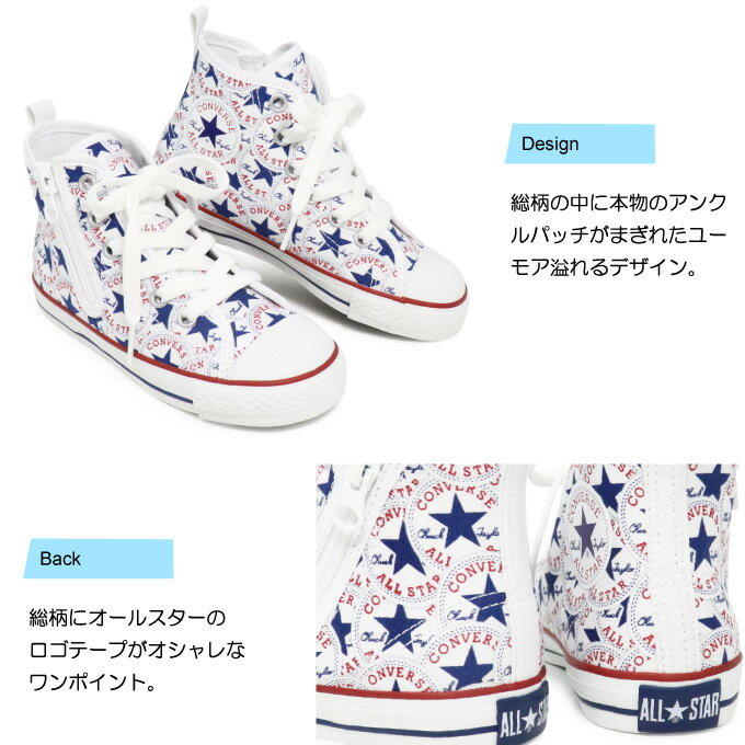 対象サイズ 15.5cm 16.0cm 16.5cm 17.0cm 17.5cm 18.0cm 18.5cm 19.0cm 19.5cm 20.0cm 20.0cm 21.0cm 21.5cm 22.0cmチャイルドオールスタープリントアレンジモデル 今回はアンクルパッチの総柄、ホワイトの1カラー展開! ■ 商品説明 【 コンバース CHILD ALL STAR N MANYPATCH Z 】 チャイルド オールスター Nのプリントアレンジモデル。