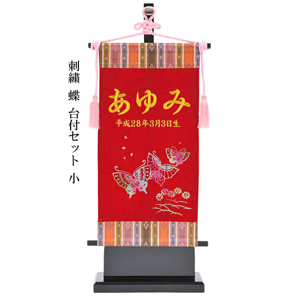 【ポイント最大33.5倍&お得クーポン】 名前旗 室内旗 座敷旗 室内飾り三月 3月 雛人形 ひな人形 桃の節句e1br「刺繍 蝶 台付セット」 赤生地 小サイズ名前・生年月日入れサービス 飾り台付 送料無料 お雛様