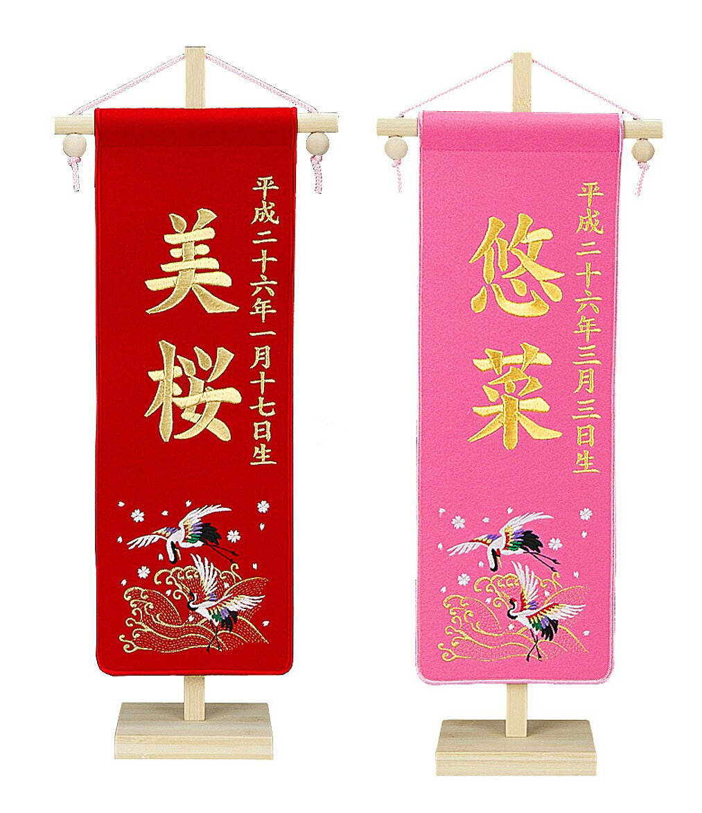 刺繍名入れ旗 祝鶴 竹製スタンド 端午 名前旗 刺繍 名旗 五月 内祝い 名前旗 命名軸