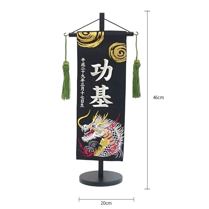 刺繍名入れ旗 慶祝龍王 Keishuku Ryu-ou 黒スタンド 端午 名前旗 刺繍 名旗 五月 内祝い 名前旗 命名軸
