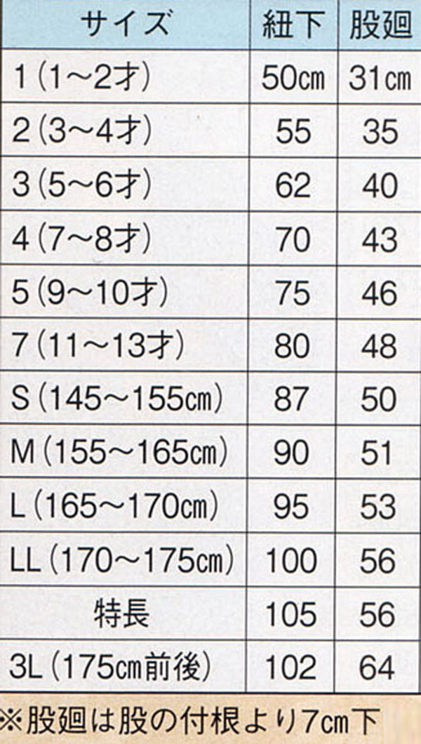 紺股引 【 紺股引 子供用 1〜3号 】 素材 綿 100% サイズ 子供用 1〜3号 1号 (1〜2才) 紐下 50cm 股廻 31cm 2号 (3〜4才) 紐下 55cm 股廻 35cm 3号 (5〜6才) 紐下 62cm 股廻 40cm ※股廻は股の付け根より7cm下です。