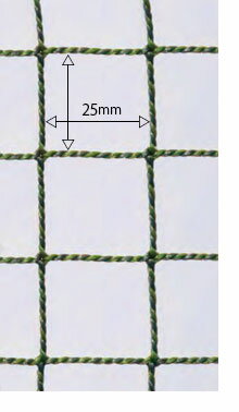 用途例 鳩よけ ハトよけ 防鳥 鳥よけ フン害防止 カラー ダークグリーン+グレー混撚 網目タイプ 角目 網目大きさ 25ミリ 網目結節 無結節 糸【太さ(mmφ)】 1.5mm 糸【規格】 440T(400D)/24本 ※440T(デシテックス)とは10000mあたり440gの重さがある繊維1本の太さを示します。