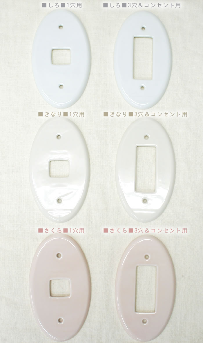 商品名 カラーズ 陶器製スイッチプレート「楕円型」 特徴 簡単&手軽に出来る!お部屋のプチ模様替え♪