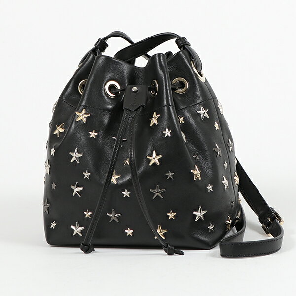 Jimmy Choo ジミーチュウ JUNO/S LTR スタースタッズ装飾 レザー ドローストリングバッグ 巾着 ショルダーバッグ ポシェット BLACK/METALLIC-MIX レディース