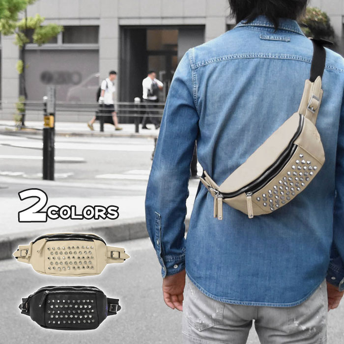 ボディバッグ メンズ/ボディーバッグ メンズ/斜めがけバッグ ファニーパック/ボディバッグ メンズ おしゃれ/フェイクレザー スタッズ ボディバッグ ウエストバッグ ウエストポーチ ヒップバッグ 横型 シンプル 無地 おしゃれ 大人 かっこいい 合皮 レザー p