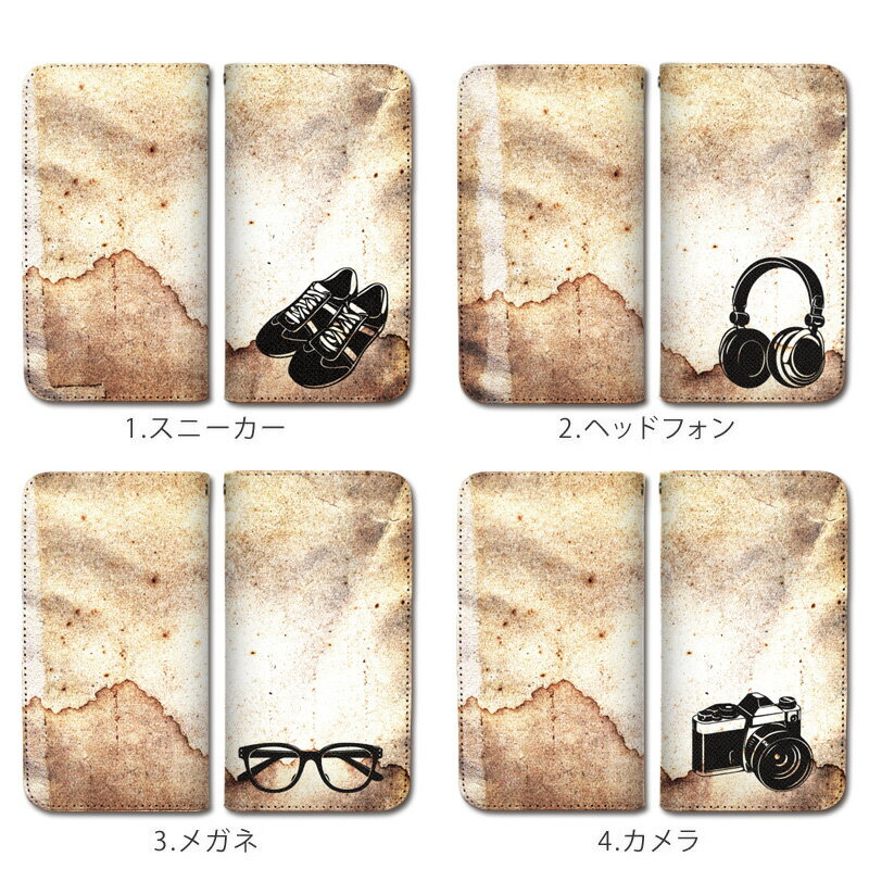 スマホケース 全機種対応 手帳型 携帯ケース ベルトなし マグネット ヴィンテージ スニーカー ヘッドフォン メガネ カメラ スマートフォン ケース iPhone12 mini Pro Max SE 11 Pro Max XS XR 8 7 AQUOS sense R R2 ZETA GALAXY S9 S8 Feel Xperia XZ3 XZ2 XZ1